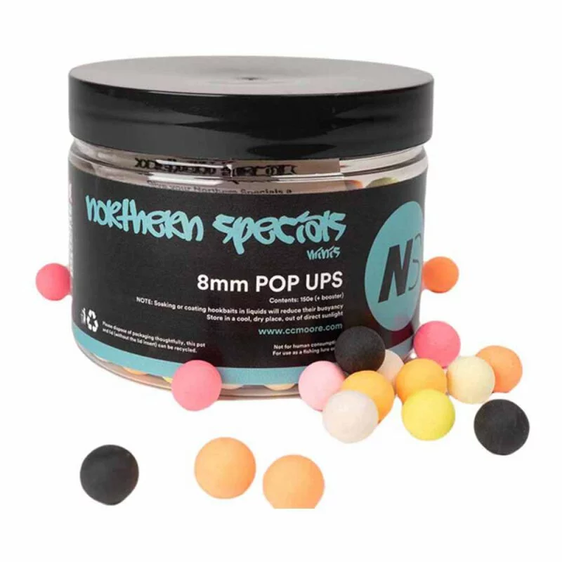 High-Viz, 8mm Northern Special NS1 Pop Ups. Jeder Dose enthält 8 gemischte Farben und ein Tütchen NS1 Hookbait Booster. Diese ultraschwimmenden Pop Ups eignen sich perfekt als kleine Einzelköder oder für Schneemann-Präsentationen.