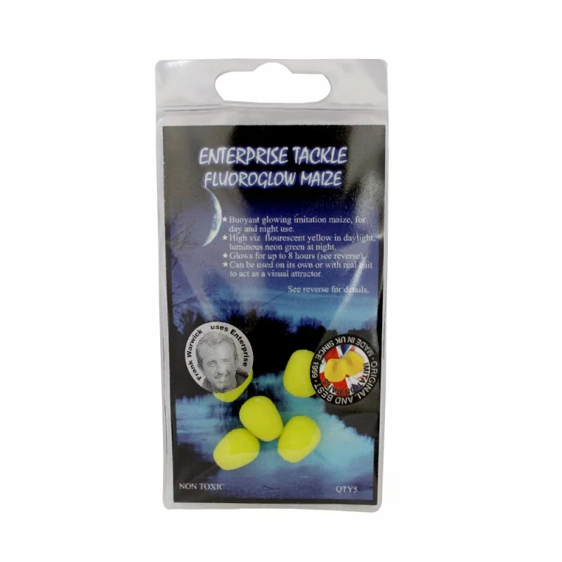 Der Fluoroglow Maize, ein großes Maiskornimitat, kombiniert am Tage das sehr gut wahrnehmbare Fluoro-Gelb und in der Nacht die extreme Leuchtkraft in grellem Grün.